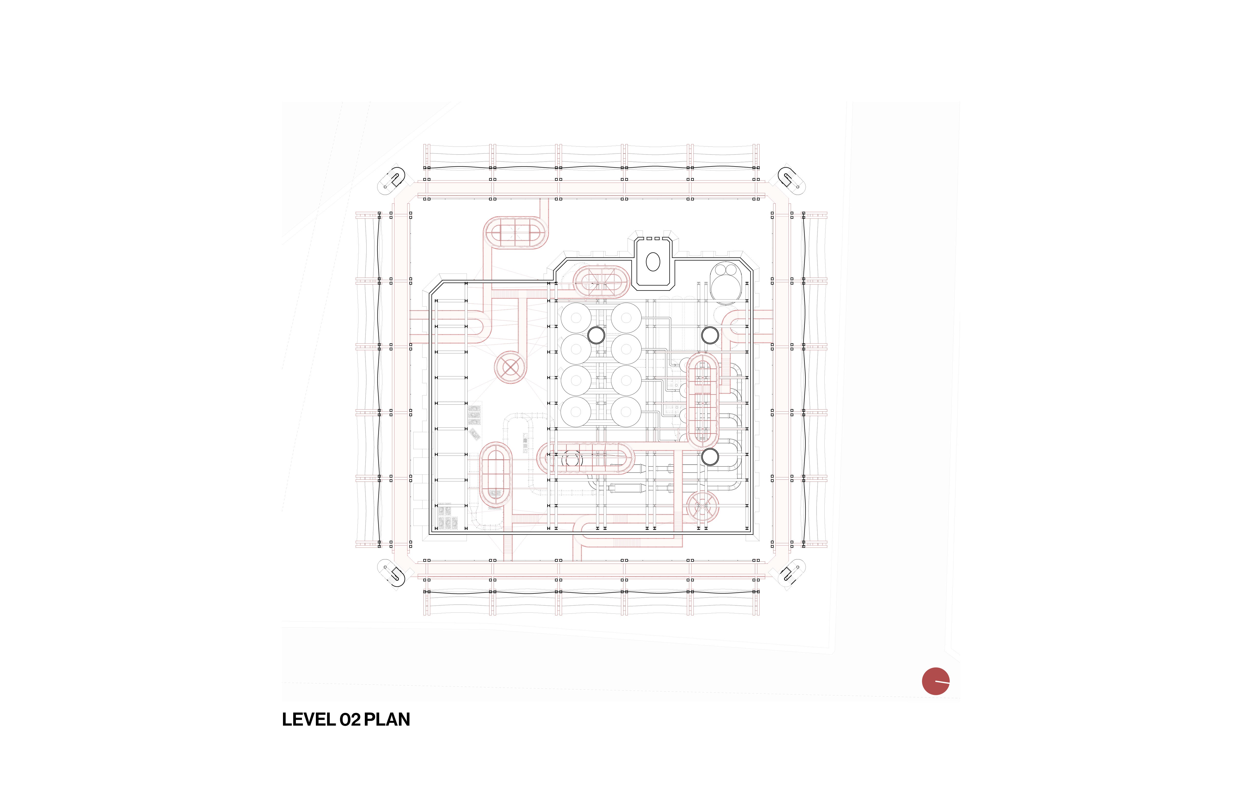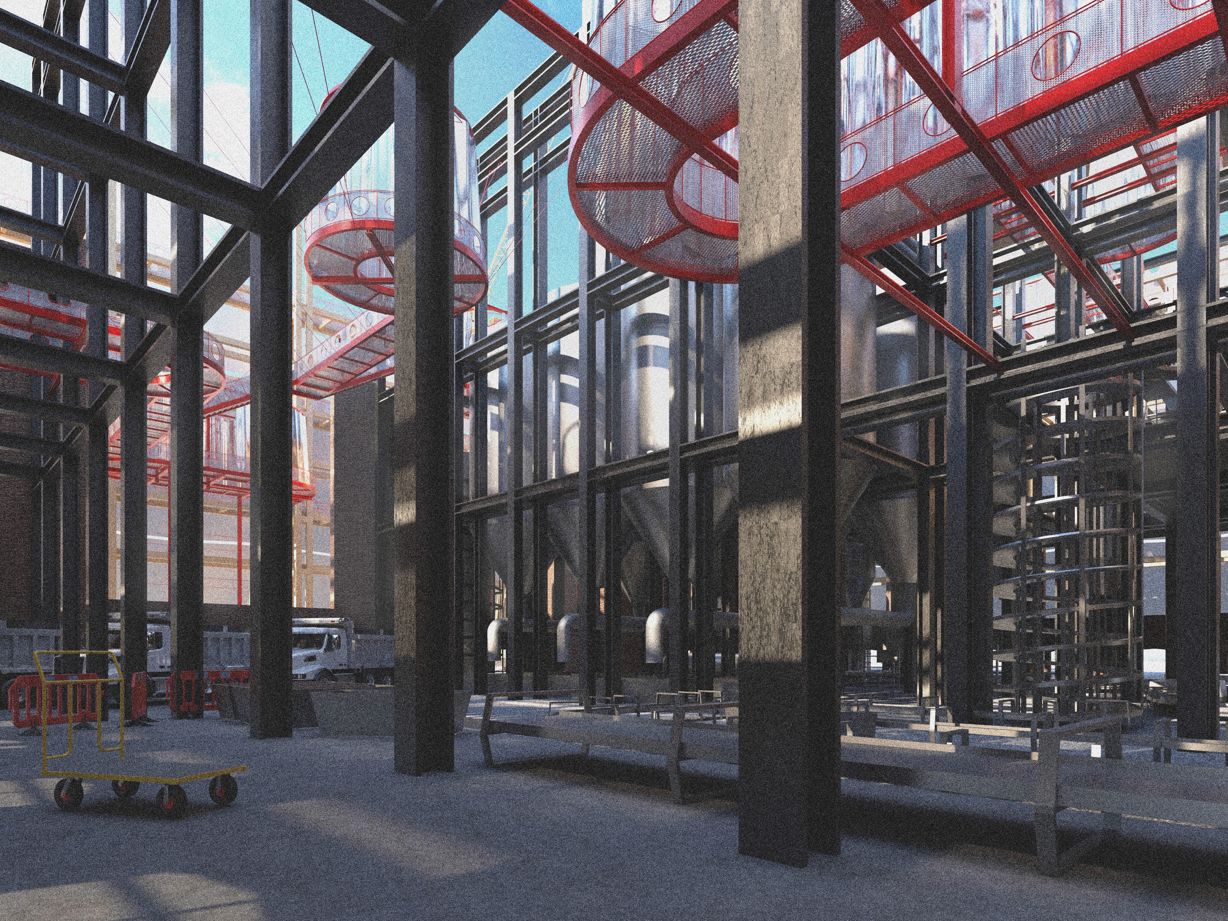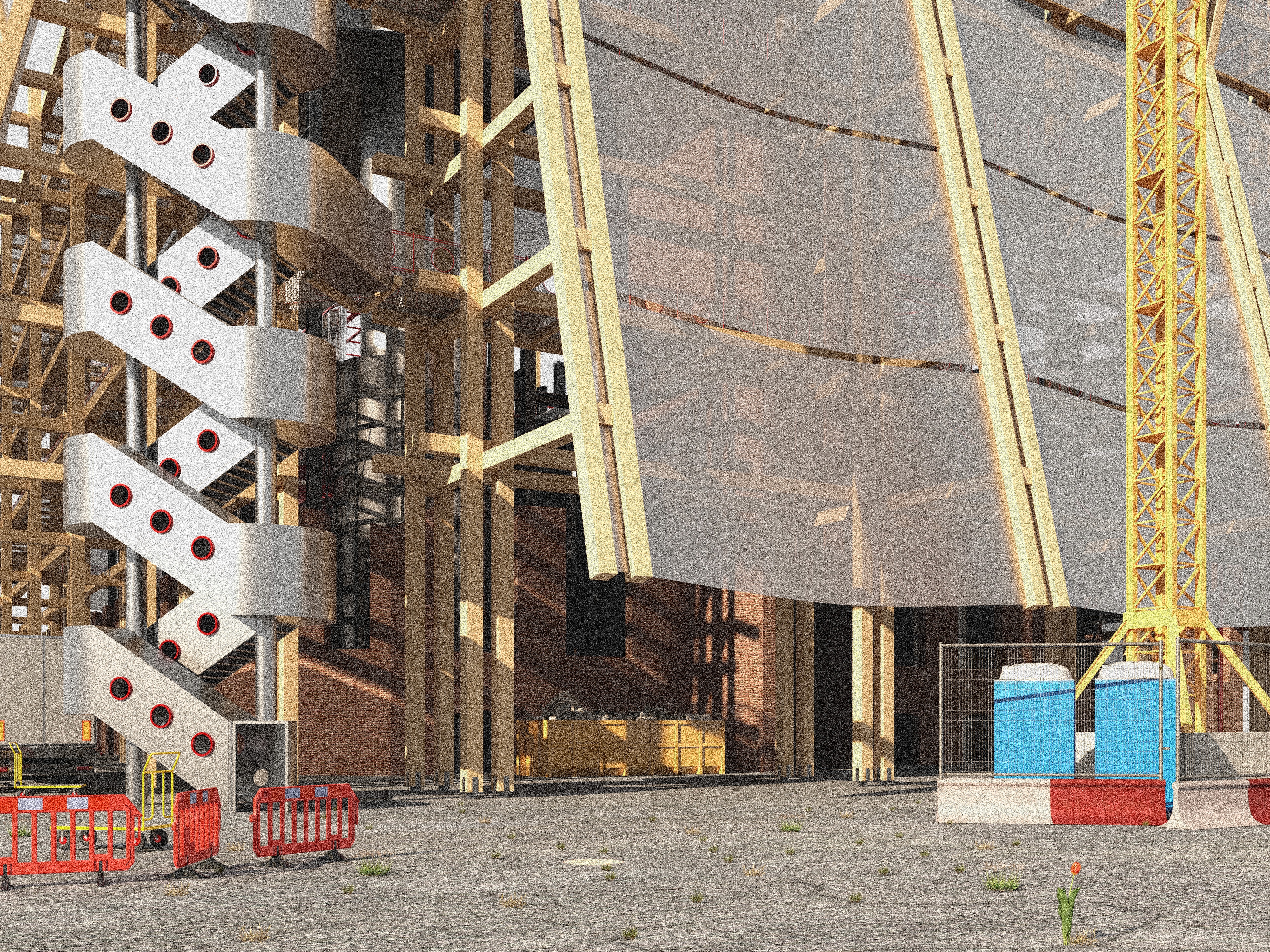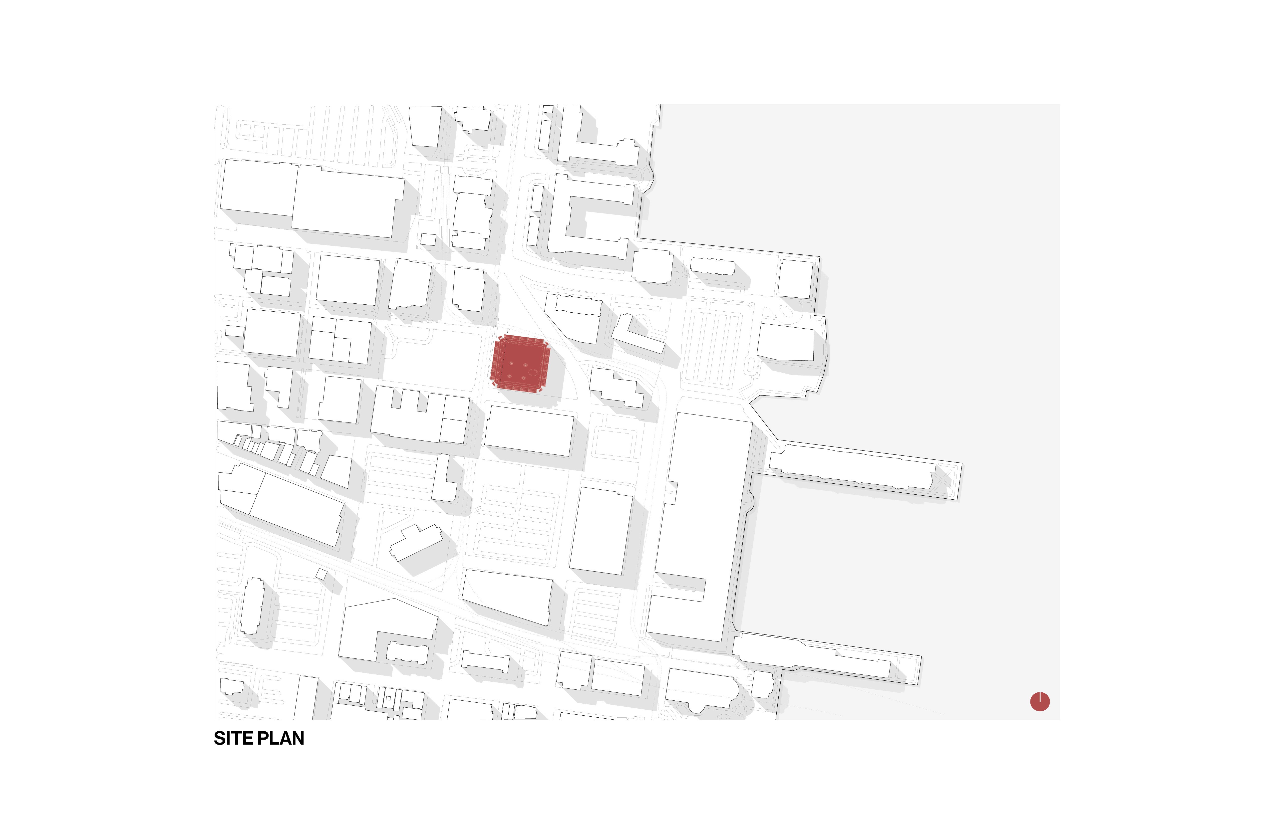 What happens to our buildings after they die? Terminal Brick Works operates as a brick reclamation facility inserted into the existing shell of the Hudson and Manhattan Railroad Powerhouse in Jersey City, treating the structure not as a preserved artifact, but as an active participant. A curtain scaffold wraps the building, drawing from the language of magic to veil and reveal industrial processes while inviting public observation through movement and visual permeability, also functioning as a protective filter, capturing brick dust and shielding the surrounding city. Within, brick collected from across the region is either restored into reusable units or crushed into sediment, returning it to an elemental state. Over time, the host structure is gradually dismantled and consumed by the systems it contains. The building shifts from container to participant until only the curtain scaffold and machinery remain, leaving behind a visible trace of architecture’s afterlife.